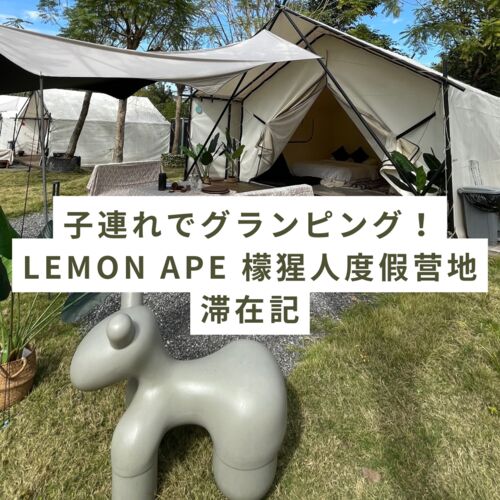 旦那が出張で息子と2人で過ごす週末に、どこに行こうか迷ってて、同じく旦那さんが出張予定の友人Mちゃんを子連れキャンプに誘ったら、「このキャンプ場行こうよ!」と言われて、「Lemon ape 檬猩人度假营地」に行ってきました。結局、Mちゃんのお母さん&M…