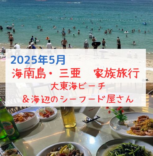 2025年5月に、家族で海南島の三亜に旅行に行きました。 全体の記事はこちら↓ 今回は旅行中に何度もお散歩した大東海ビーチと3日目の晩ごはんを食べた「欢潮大东海·海鲜」という海鮮料理屋さんについて書きます。 大東海ビーチ 欢潮大东海·海鲜 住所 営業時間 …