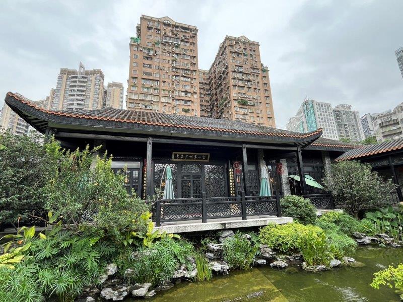荔湾湖公园の入口の真ん前にあるおしゃれな広州酒家とスタバ!